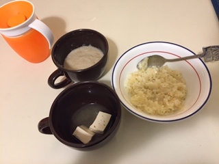 オーツシリアルと洋ナシのピューレ(朝の残り)