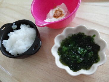 ちなみに、今回もわかめは大人の味噌汁から取り分けたものを使いました。汁は切っているものの、ほんのーーりみそ味がしていたので、いつものごはんより味がついていて美味しかったのかもしれません。少しずつ調味できる月齢ですが、あえて調味しなくても十分いけそうです。 まあ、そのうち保育園に通ったりを考えると、そろそろ調味料を使うことも考えないとなあ・・・。Aちゃんは今のところ、味付けしていなくても全然食べてくれているので、忘れがちになりますが(;^ω^)