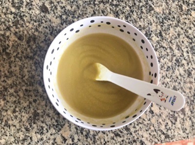 *パピーヤ(粉ミルク大さじ2、お湯適量、乳幼児用シリアル、フォークで潰したバナナ1本分)