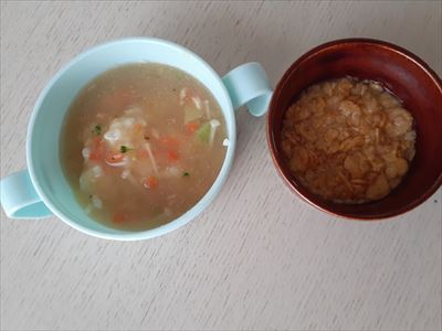 今日のみなんこメシは、大人用のお味噌汁をリメイク♪