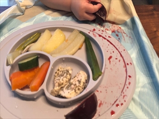 息子はたまにすごい飛距離を出す時があって、こりゃ将来が楽しみだと笑っちゃうのですが、お皿に戻して怒りはせず「これアムってしてみてごらん!これ美味しいやつだよ!」と一応諭してはいます。