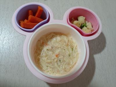 ですが…。みなんこはまだ食べられないので、パスタと付け合わせのおかずだけのご飯です!