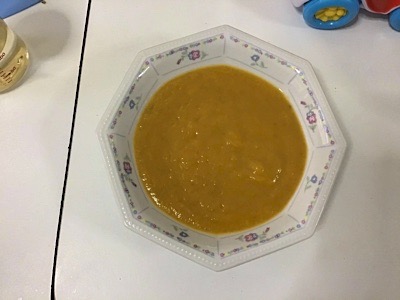 義母は、ペピートはもう上の歯も2本生えてきているし、クラッカーは食べるので、米やパスタ、野菜もピュレではなく塊をあげた方がいいのではないかと言います。ためしに、茹で野菜を小さく切ってあげてみましたが、やはりすぐに口から出してしまいました。