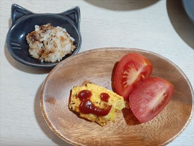 今日のみなんこメシ(夜)は、『オムレツ&トマト』に色々な残り物を調理したメニューです(*´▽`*)