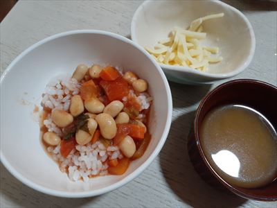 ◾ごはんのトマト煮豆がけ(赤い種ごはん)
