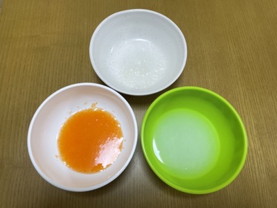 今日は10倍粥をスプーン小さじ6杯とニンジンを小さじ3杯とだいこんを小さじ1杯をあげてみました!