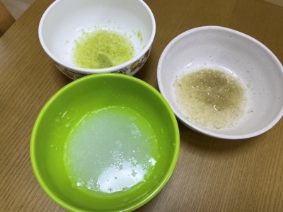 今日も前回からナスを少し増やして10倍粥をスプーン小さじ6杯とナスを小さじ4杯、はくさいを小さじ2杯をあげてみました!