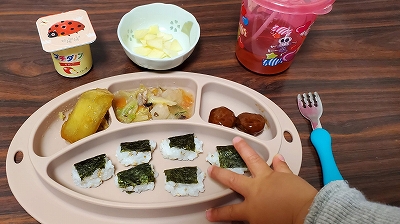 海苔巻きは手掴み食べしやすく、子どももパクパク口に運べるので食育的にもありがたいです♪