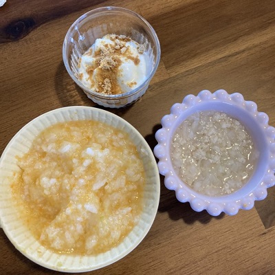 途中から食べなくなってきたので、ヨーグルトを挟んでごまかしながらあげました。