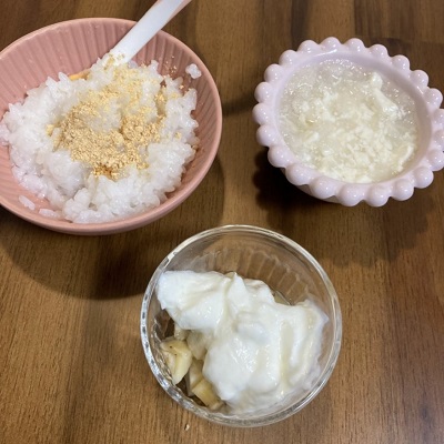 味はおいしいみたいでしたが、よく混ぜないときなこの粉が喉にひっつくらしく、しょっちゅうむせていました。