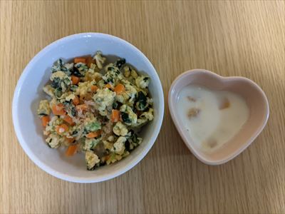 本日の夕食は「鯛と小松菜の卵とじ丼」です。