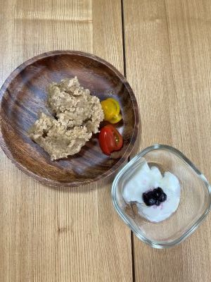 オートミールの蒸しパンは手づかみで食べてくれました。完食でした。オートミールは白米に比べて食物繊維とミネラル・鉄分が豊富なのでおすすめです。