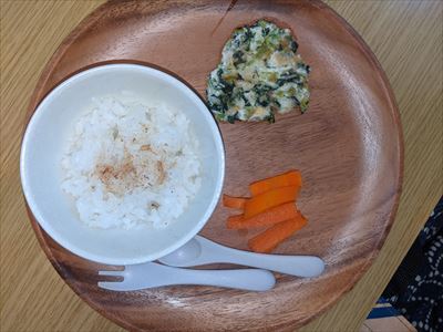 かつお節ご飯とチーズ焼きそれぞれ2割程度残しましたが上出来です。