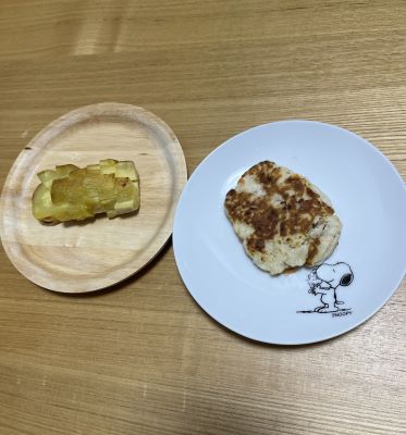 豆腐ハンバーグも焼き芋も手づかみで食べてくれました。野菜も混ぜているので食物繊維とタンパク質を一緒に摂取できていいですね。豆腐ハンバーグは大好きなのですぐにペロッとなくなりました。赤ちゃん語が翻訳できるなら、おかわりと言っていたであろう感じでした。嬉しいですね。手づかみで自分で食べてくれると楽ですね。後片付けがちょっと大変ですが…。練習あるのみです。