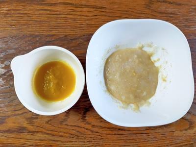 かぼちゃも好きな食材なので、しっかりと食べていました。きな粉がゆのほうがお気に入りのようで、きな粉がゆの後にかぼちゃを食べさせると、ちょっと嫌な顔をしていました。