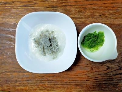 9倍がゆ 小さじ5、ちりめんじゃこ小さじ1