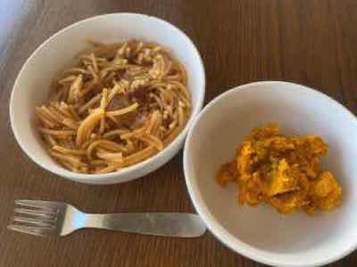 子どもも大人も大好きなミートソーススパゲティ。手掴み食べの子どもに与えるのはなかなか勇気がいりますが(笑)、とても美味しそうに食べてくれるので気持ちにゆとりのある休日に作っています。