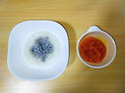 かぼちゃ、おかゆはみーが食べやすいのですが、今回のちりめんじゃこはどうでしょうか。
