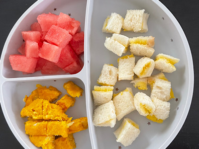 バナナ等の腹持ちがいいフルーツはごはんが食べ終わった最後にデザートとして出すようにしているのですが、スイカは殆どが水分なのでいいかな、と思い一緒に出してしまいました。