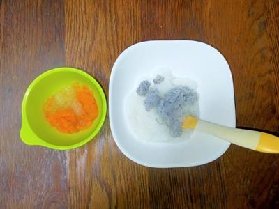 離乳食を食べたみーの様子を聞くと、めっちゃいっぱい食べた、と言われました。