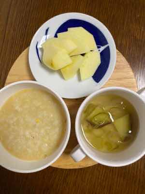 寒い朝が続いたので、普段はパンを食べることが多いのですが、お粥を作ってみました。お出汁の優しい旨味とお味噌のコクがよく合い、ほっこりする味わいのお粥に仕上がりました。冷めるのに時間がかかるので、出来立てを食べたい時には氷を入れて冷ますと安心です。