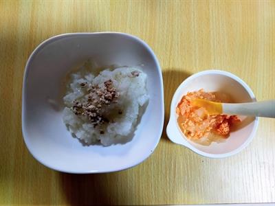 豚肉は細かく刻みましたが、えずいてしまいそうなので食べやすさ重視でおかゆにのせました。おかゆのとろみで、食べやすくなるはずです!