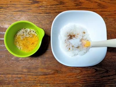みーは豚肉を食べたことはありますが、いつもおかゆに乗せて食べさせていました。今日はとろみづけ無しで、そのままのお肉に挑戦してみました。休日は新しい食材を食べさせられないので、今日は新しい食感にチャレンジです。