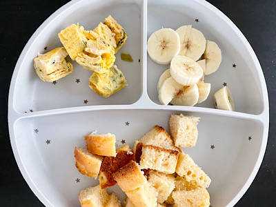 離乳食としても食べられるようにきな粉バージョンのマフィンも作ったので、今朝の朝食にしました。