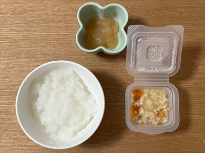 お粥のみで食べることにも慣れてもらいたいと思い、チャレンジしました。