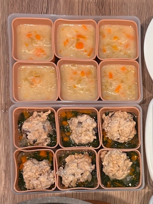 離乳食中期で使う場合は、味付けと具の大きさに気をつけて、鶏団子を食べさせる際はつぶしながら食べさせてくださいね!