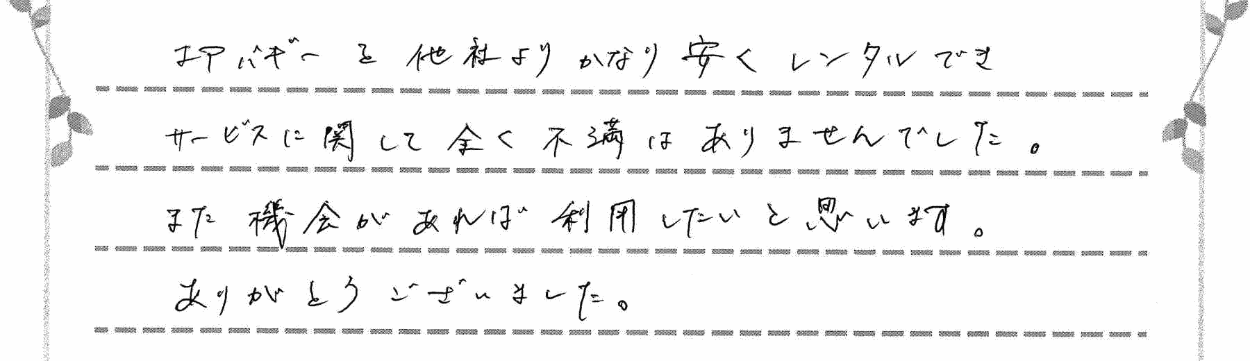 また機会があれば利用したいと思います。ありがとうございました。