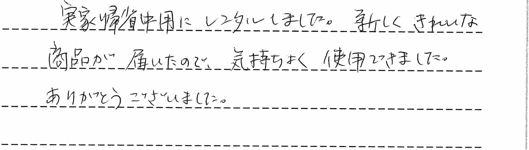 実家帰省中用にレンタルしました。新しくきれいな商品が届いたので、気持ちよく使用できました。ありがとうございました。