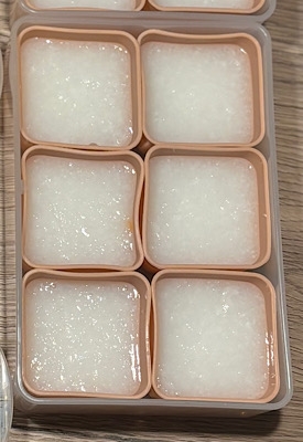 なので、45〜50ml入る小分けトレーを3コインズで購入し、1トレーを一食として入れて冷凍していました!