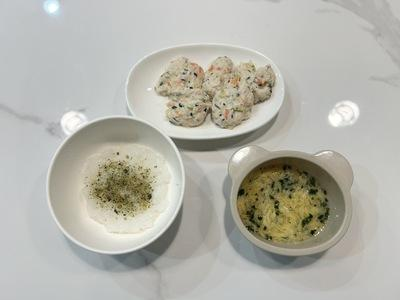 だいぶ息子も手づかみが上手になってきたので、チキンボールを半分にして持たせると