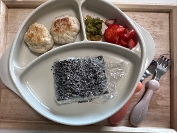 焼き海苔にごはんを乗せて二つ折りにするだけで完成し、尚且つ食べてくれるので、大助かりです。