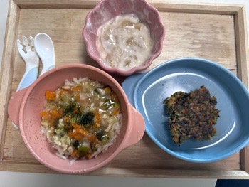実はうどんはお米よりも反応良く、半分は食べてくれました。麺類が好きなのって子どもらしいですよね。