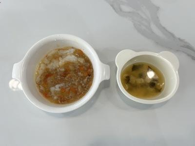 わかめと油揚げの味噌汁は、大人用のものにお湯を足し、味を薄くしました。