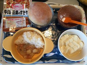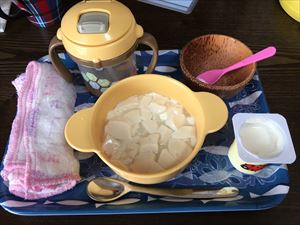 咳の事もあるので、食欲を妨げない豆腐から食べ進めてみたものの、御飯とおかずはやっぱり全然食べてくれない…。