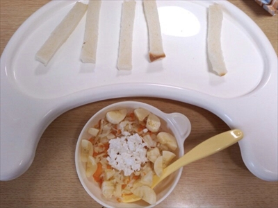 手づかみしやすい、薄味お好み焼きにしました〜〜!