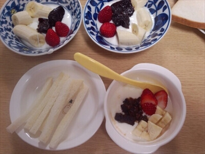 甘くないプレーンコーンフレークも、牛乳でしっかりふやかしてスプーンで食べさせてあげたせいか、よく食べてくれました。