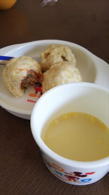 パンは完全に切り離さないで、つながった状態になるように切れ目を入れたので、持って食べているときもパンがバラバラにならず、ちびちび怪獣でも最後まで上手に食べることが出来ました。
