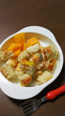 ちびちび怪獣もちびっこ怪獣も、朝からモリモリ食べてくれました。ホットケーキピザは30分くらいあれば出来るので、朝ごはんにたびたび登場するメニューです。今回はチーズがなかったので、具がポロポロしないように卵に混ぜ、生地の上に流して焼いてみましたが、大成功!