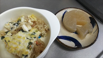 ちびっこ怪獣のお弁当用に作ったメニューですが、多目に作って、ちびちび怪獣のお昼ごはんにしました。