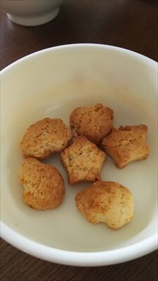 厚さ1.5㎝位に伸ばして好みの型で抜いていく。オーブンシートを敷いた天板に並べて、表面に牛乳をぬって、予熱したオーブンで15分くらい様子を見ながら焼いたら完成。