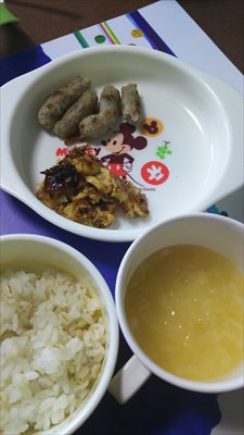 キッシュは、パンがやわらかくなっているのと大好きなケチャップがかかっているので、パクパクモグモグが止まらず、あっという間に食べてしまい、ちびっこ怪獣の分を食べようとしましたが、ちびっこ怪獣もパクパクペロリだったのでおかわり出来ず。「もっと食べたいー!」と泣き叫んだちびちび怪獣でしたが、昼寝をしていなかったので、抱っこしてちょっとトントンしたらコテッと寝てしまいました。