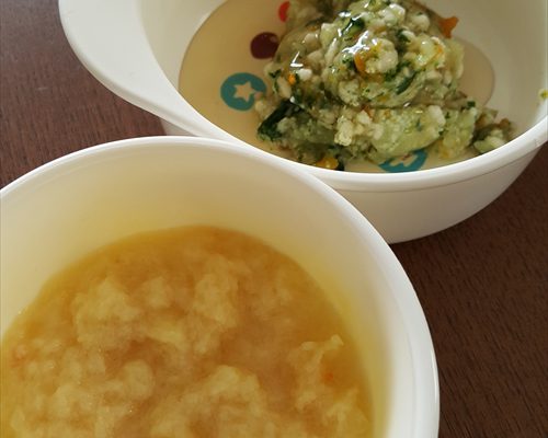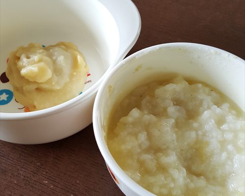 卵黄やブロッコリー、鶏ひき肉等のパサパサ、ぼそぼそしている物はじゃがいもやさつま芋、かぼちゃの潰したの、ヨーグルトに混ぜるとポテッとしてたべやすくなります。