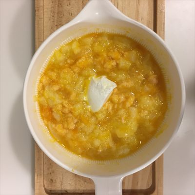 *モグモグ期のかぼちゃとたまねぎとサケ