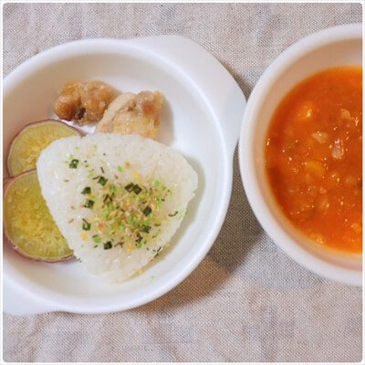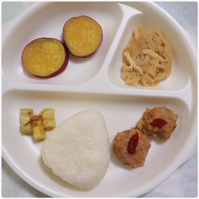 焼きなすとハンバーグは親のご飯からのおすそ分けです。