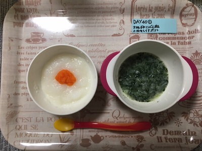 朝ごはんは粉末シリーズ。ゆめちゃんぺろりと完食。もしや足りないかな・・・?