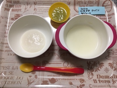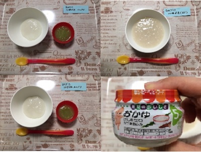 前日からお泊りだったので、ゆめちゃんの今日のメニューはベビーフードの瓶詰めおかゆです。